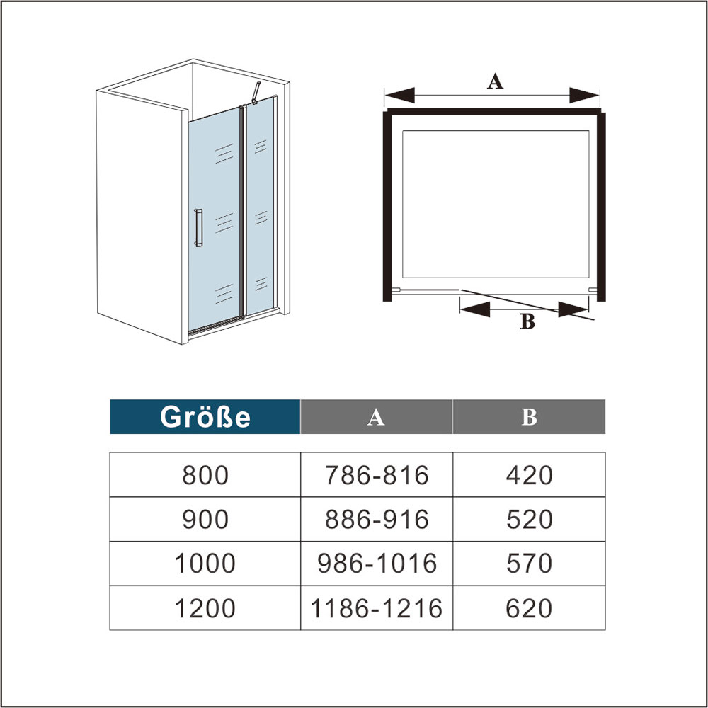 • Duschtür: 5mm ESG Sicherheitsglas