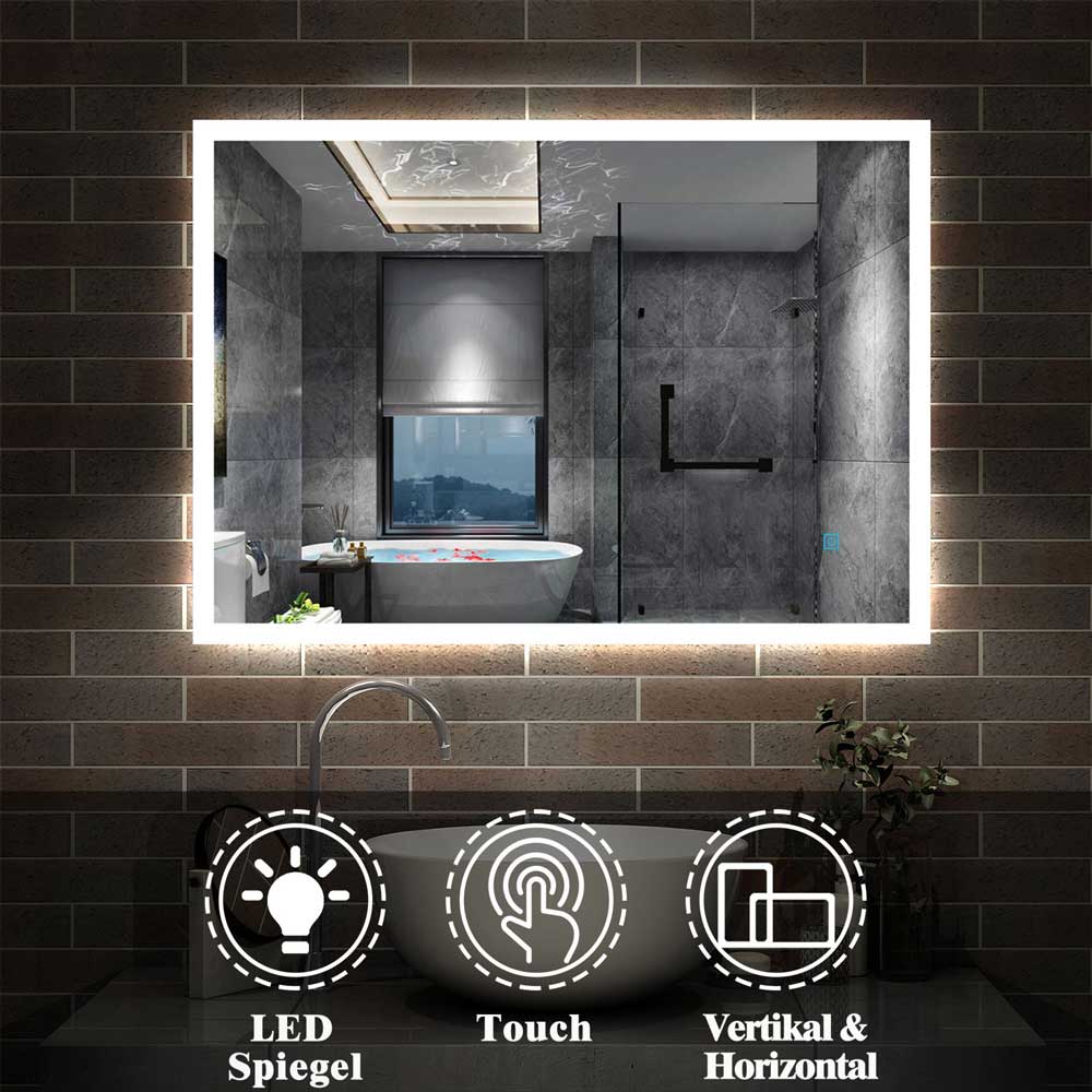 80×60 cm LED Badspiegel 1xTouch Kaltweiß[Typ H]