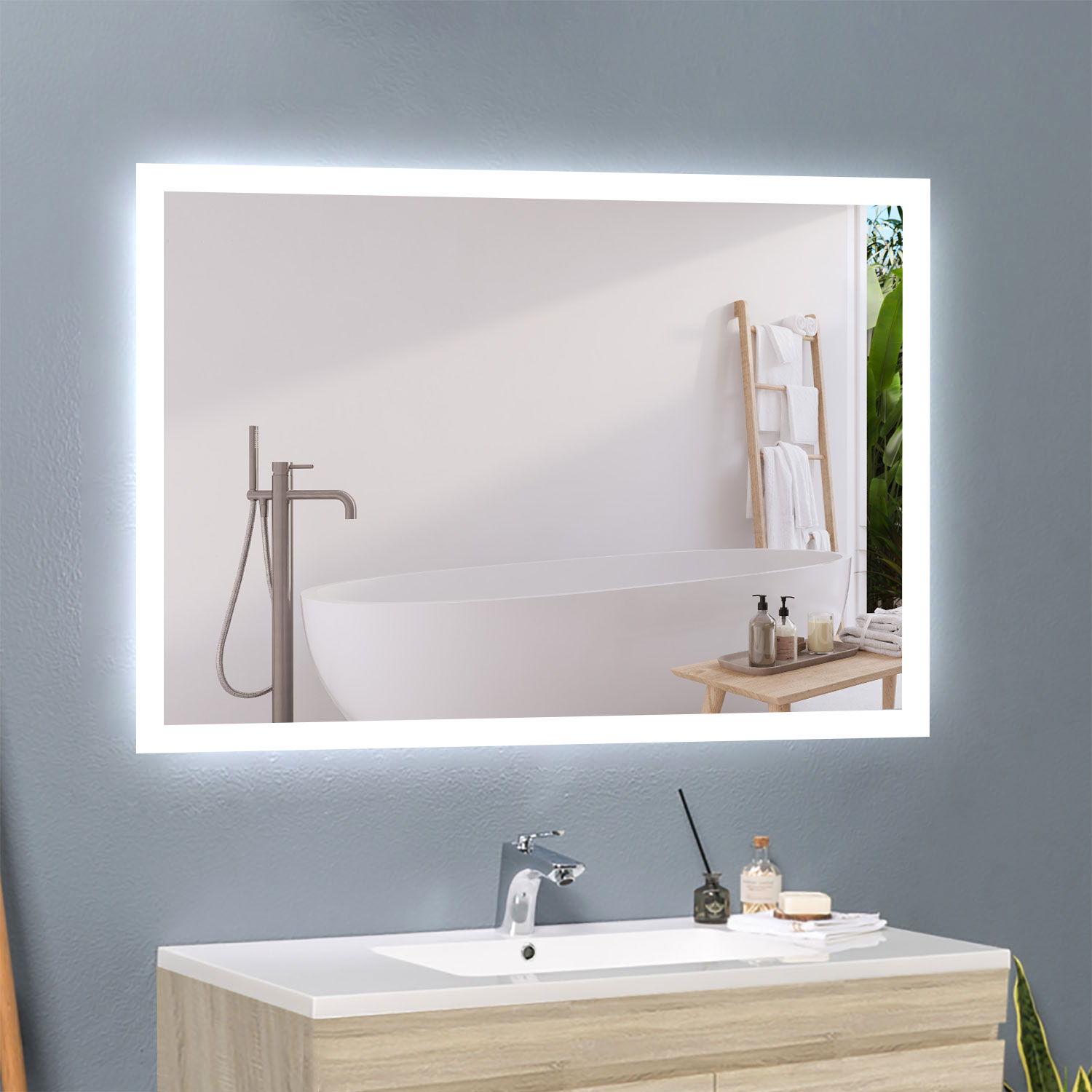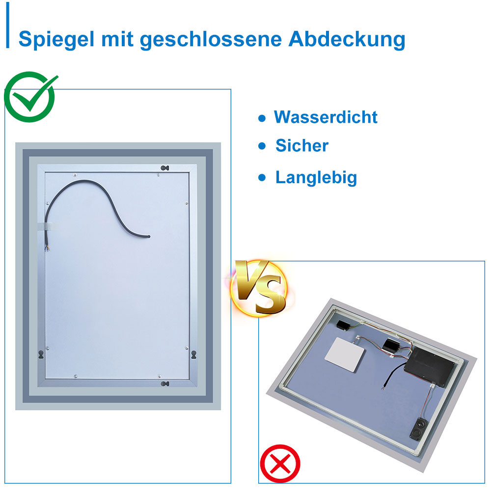 60×50 cm LED Badspiegel 1xTouch Beschlagfrei Kaltweiß[Typ G]