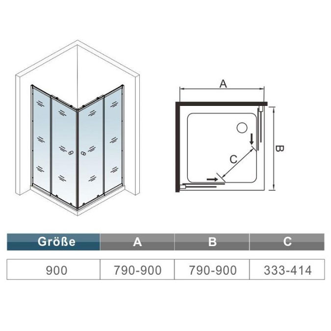• Duschkabine Größe: 90x90cm , siehe die Technische Zeichnung
