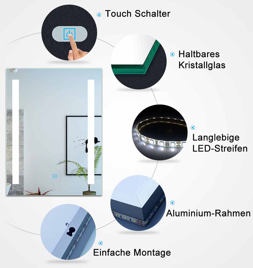45×60 cm LED Badspiegel 1xTouch Beschlagfrei [Typ E]